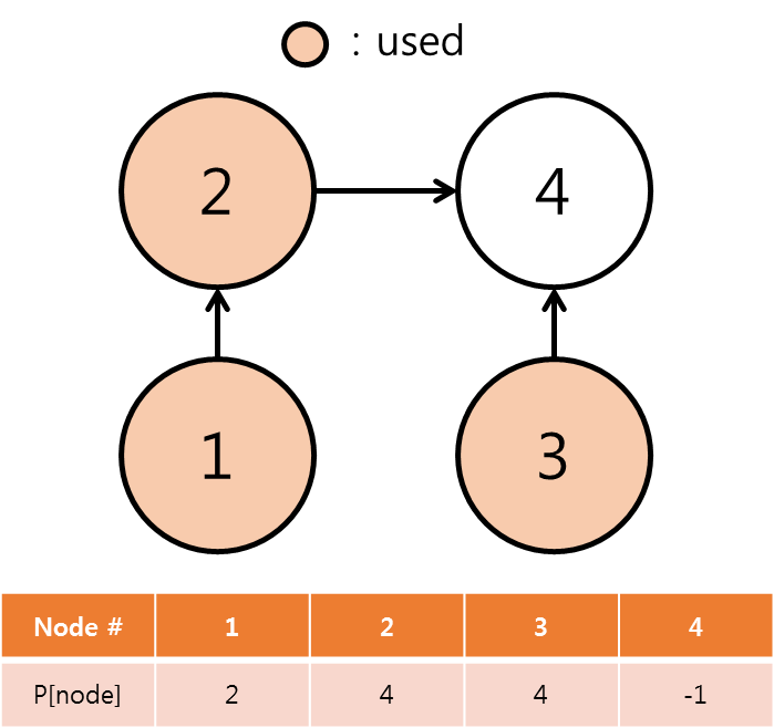 하지만 현재 3번 노드의 root는 4번 노드이므로, 결과적으로 2번 노드의 root는 4번 노드로 저장된다.